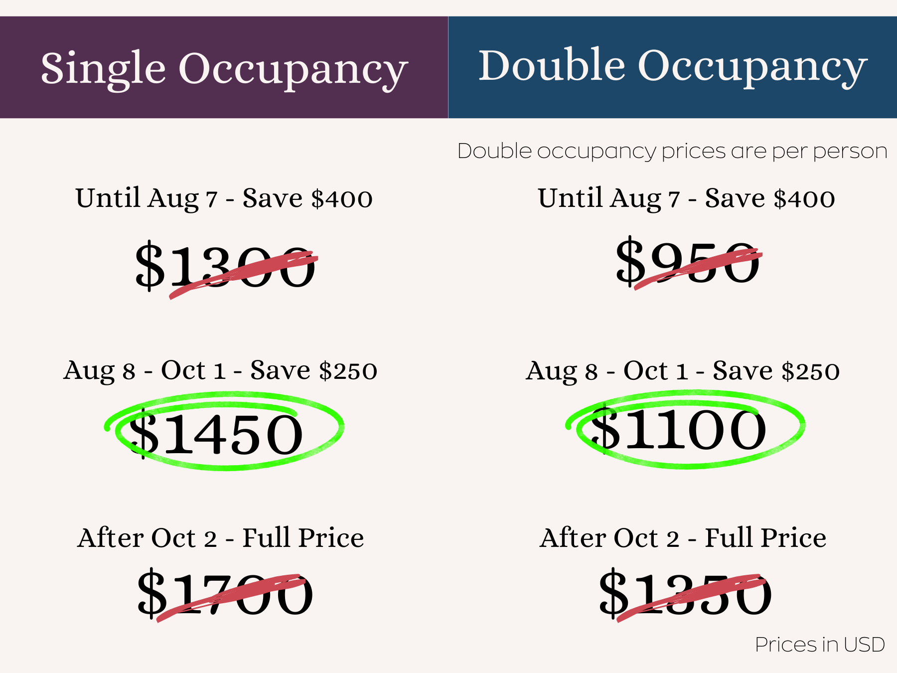 As you dive deeper into your practice, you'll be nourished by a delicious array of vegetarian food that is crafted with love and care, using fresh and locally sourced ingredients. And when you're ready to rest and recharge, you'll retreat to your own unique and comfortable accommodations, where you can relax and unwind in total privacy and serenity.